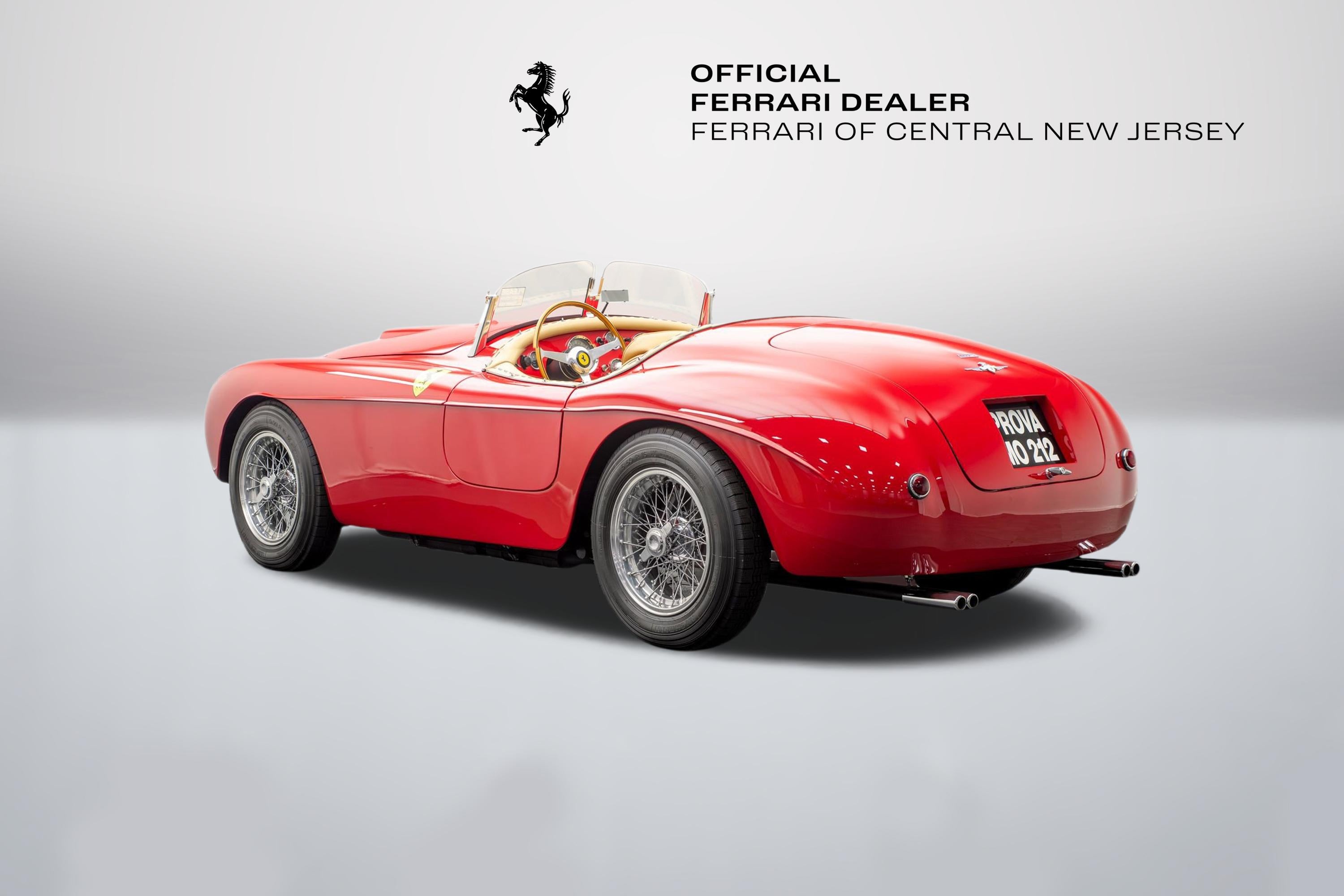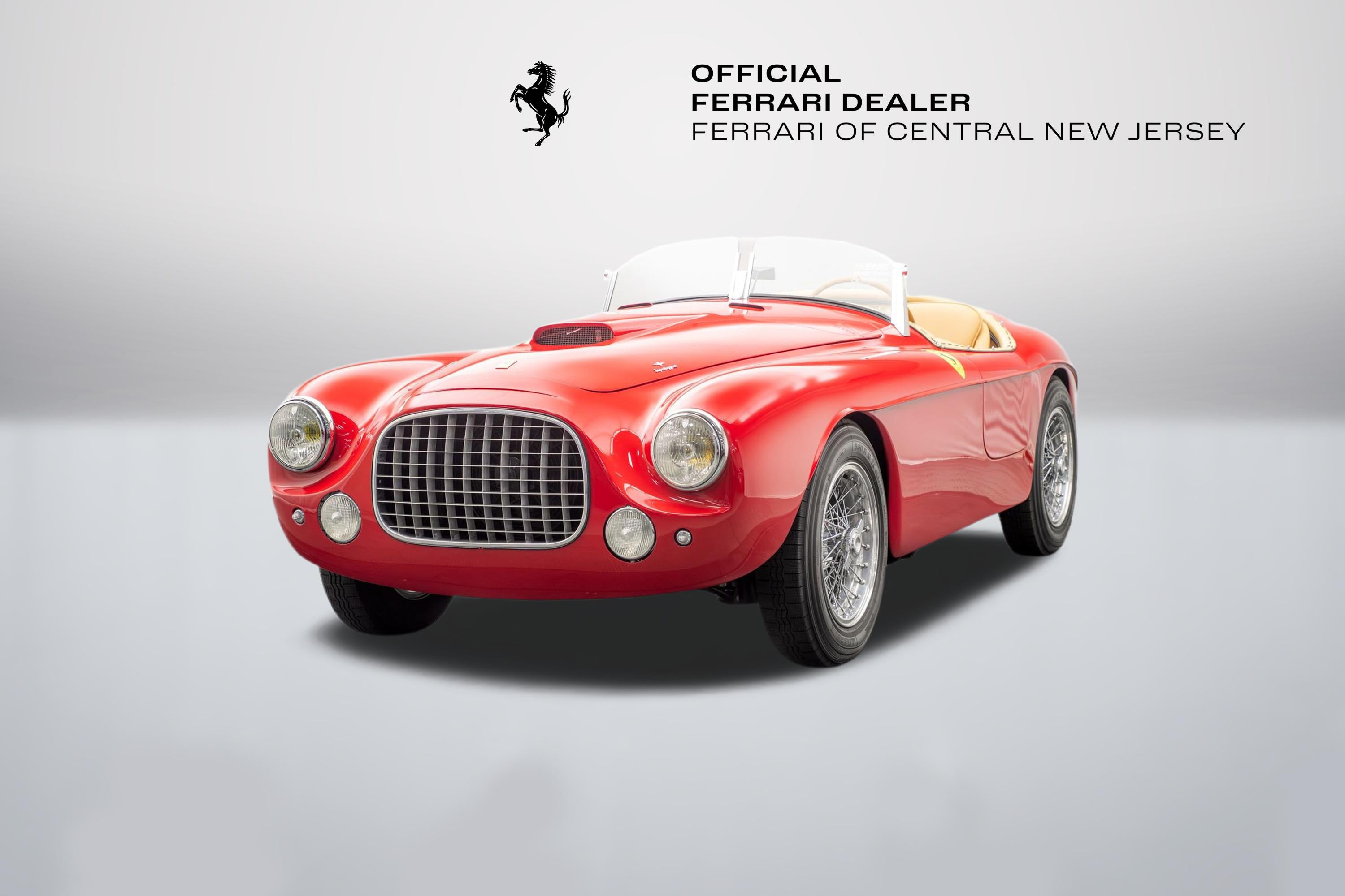 FERRARI OF CENTRAL NEW JERSEY IS PROUD TO PRESENT THIS BEAUTIFUL 1965 Ferrari 212 Barchetta 212, Red WITH Beige. Welcome to Ferrari of Central New Jersey, where the essence of Ferrari's spirit and excellence is at the heart of everything we do. As the official Ferrari dealership in New Jersey, we are dedicated to providing an unmatched automotive experience to our valued clients throughout the NYC metro area and beyond. Whether you visit our showroom in person or explore our offerings virtually, you'll discover a diverse inventory that includes the latest Ferrari models, timeless classics, and a curated selection of high-end vehicles from other prestigious automakers. Our state-of-the-art, authorized service facility is designed to keep your Ferrari in peak condition, ensuring an optimal driving experience for years to come. We offer the convenience of complimentary vehicle pick-up and drop-off in a fully enclosed trailer, making your service experience as seamless as possible. While you're here, visit our boutique to browse a range of genuine Ferrari accessories, shop the latest Ferrari styles for gifts and apparel, and enjoy an espresso or refreshment. Our knowledgeable sales consultants are eager to guide you through the Ferrari culture, sharing insights about exclusive upcoming events and Ferrari activations. Take a tour of the Atelier, our dedicated design studio, where you can personalize every detail of your new Ferrari on order. Explore an endless array of paint colors and interior options to create a vehicle that is uniquely yours. We look forward to welcoming you and guiding you through an immersive experience in the Ferrari lifestyle and of this legendary brand. For any inquiries, please contact us at Ferrarisales@ferraricnj.com or call 732-248-9100.